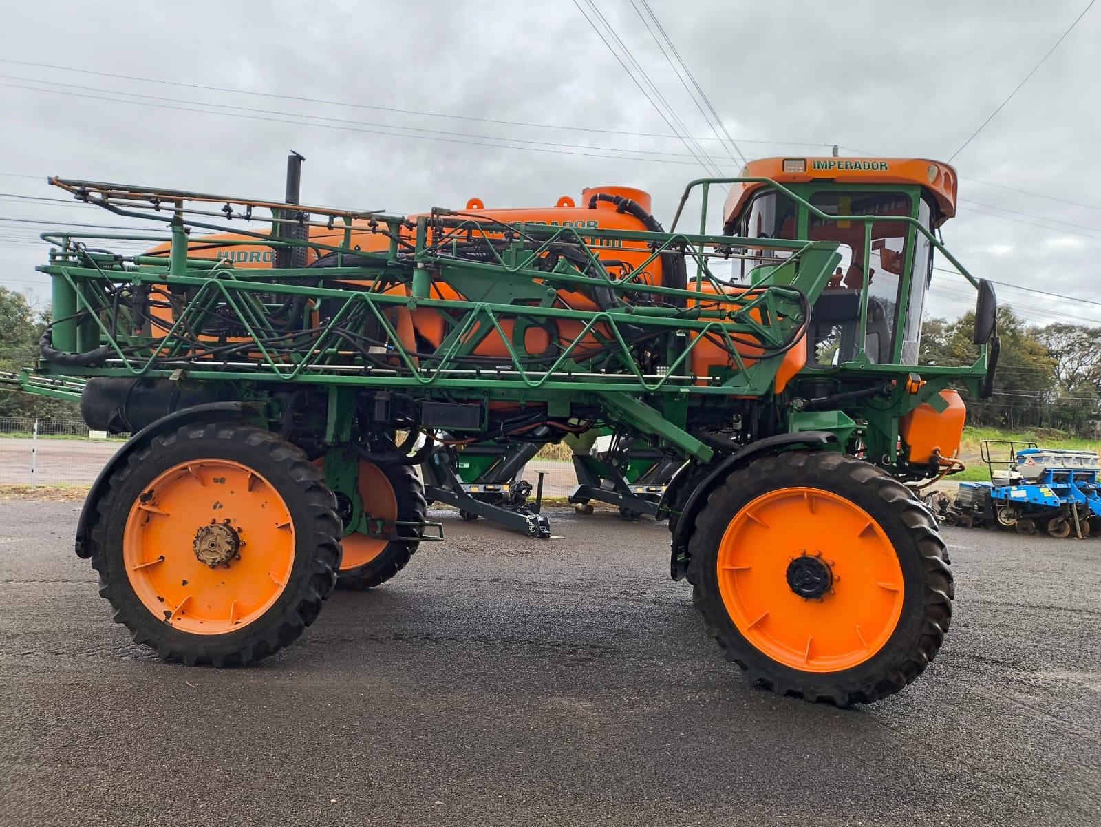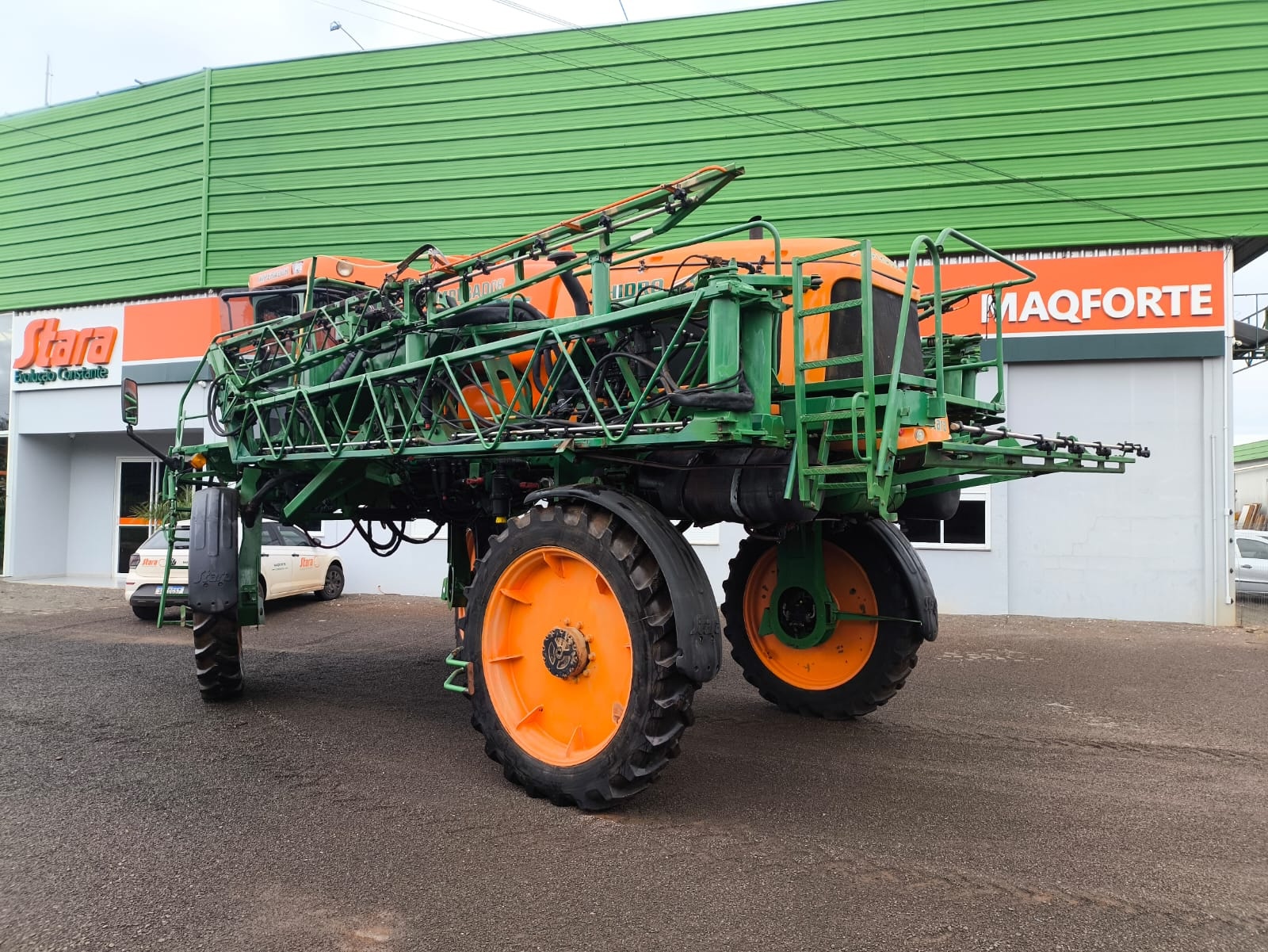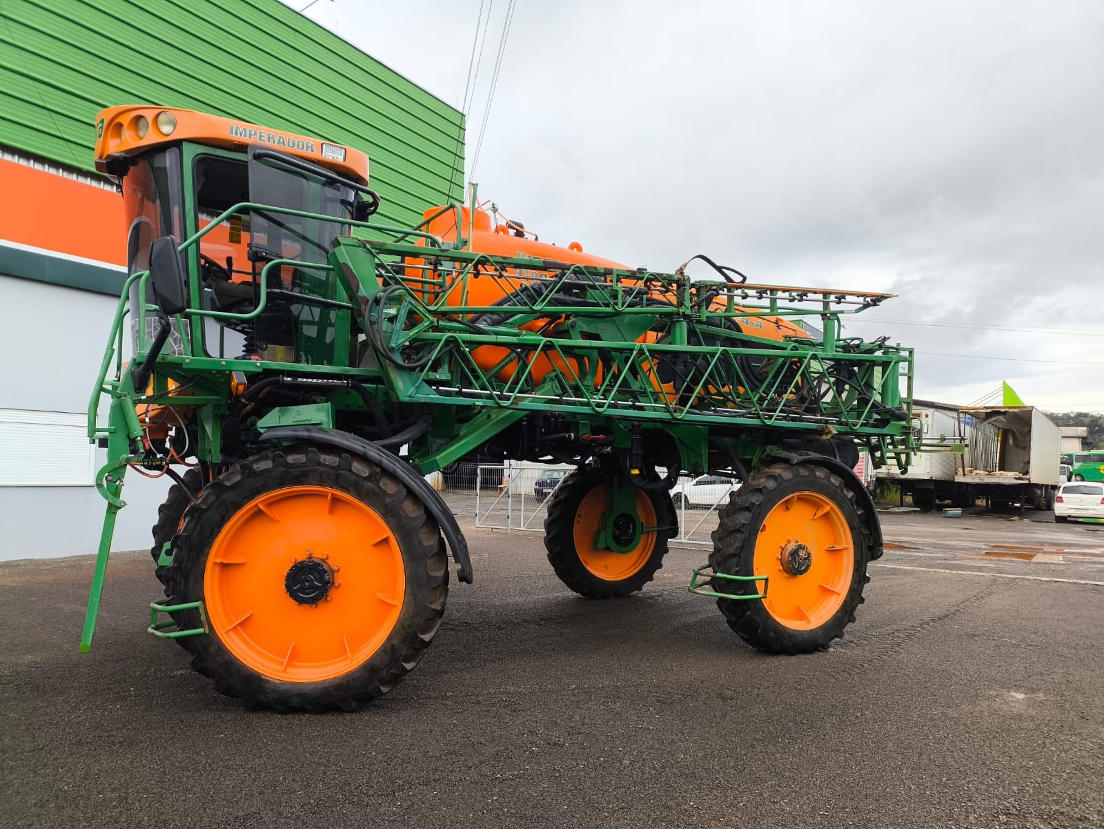 Pulverizador autopropelido Stara Imperador 3100, ano 2012, com tração hidro 4x4, motor MWM 215 cv, tanque de 3.100 litros e barras de 30 metros. Equipado com Topper 4500, piloto automático, abertura de bitola hidráulica e sistema com 7 cortes de seções. Máquina revisada.